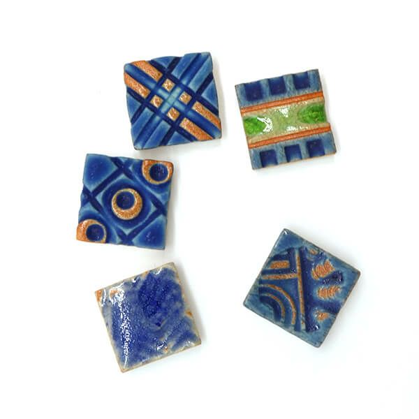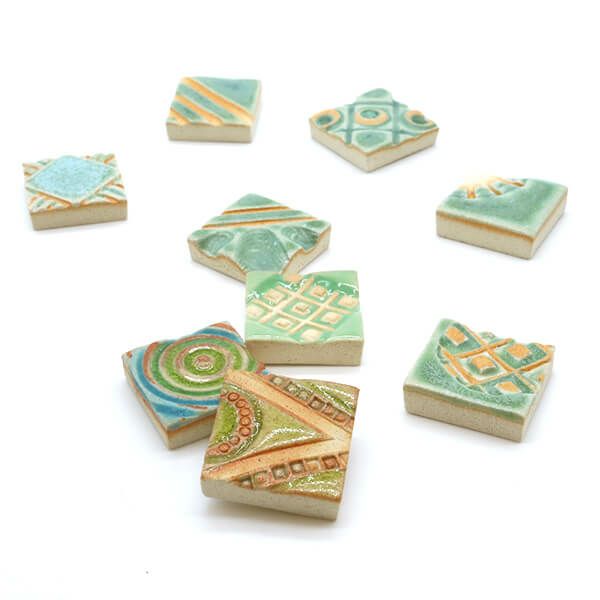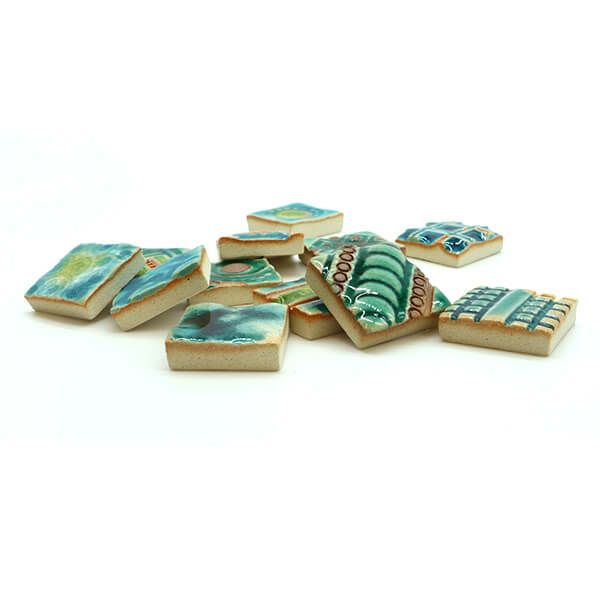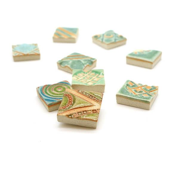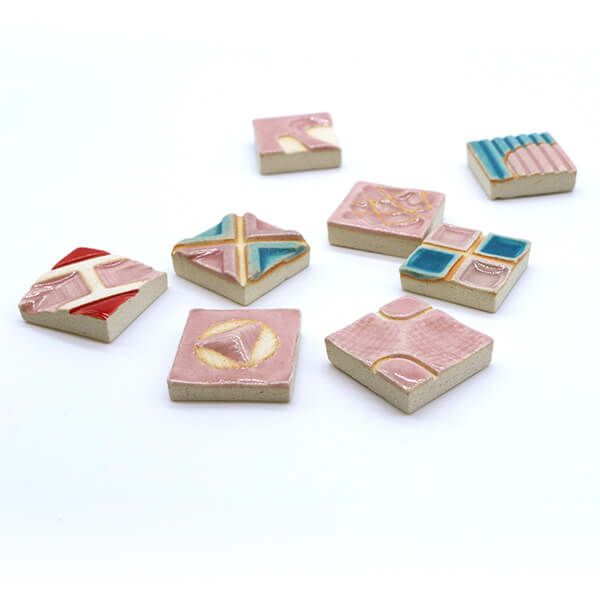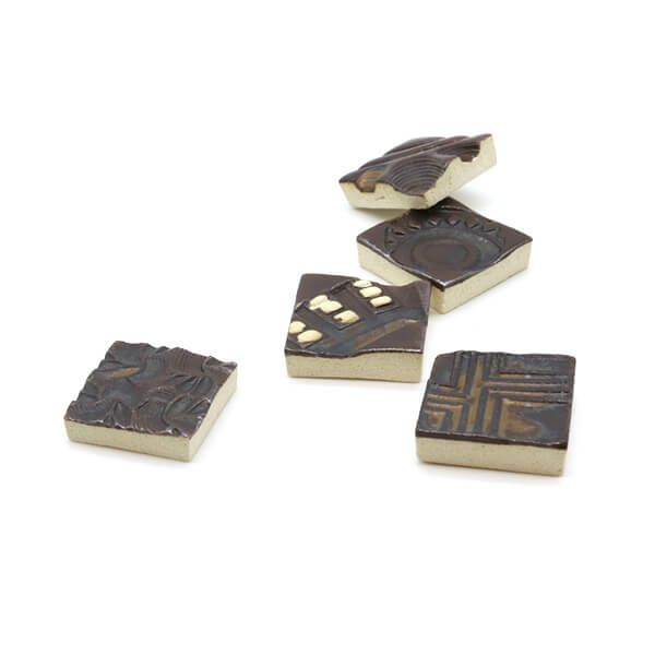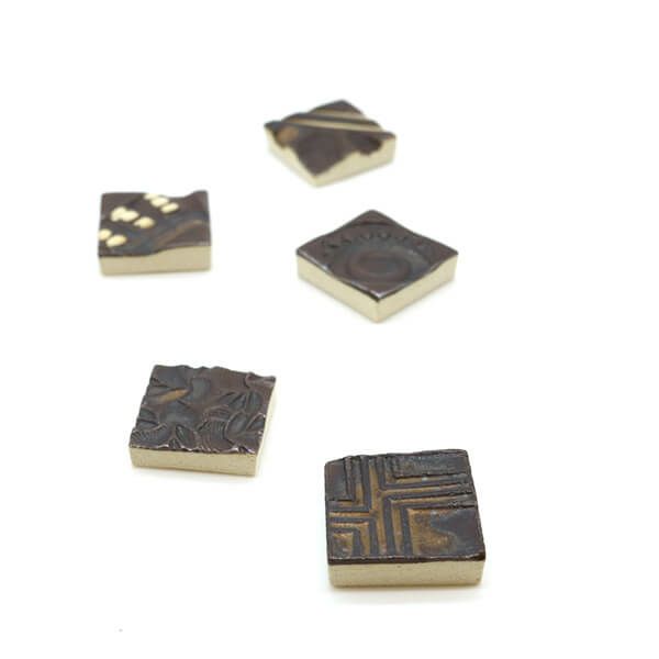 遺跡や街並みをモチーフとした作品を多く手がける彼女のタイルは、宝箱に大切にしまっておきたくなるような、どこかエキゾチックな佇まい。タイルとしてはもちろん、ペーパーウェイトや箸置き、アクセサリーパーツとしての使用もおすすめです。
