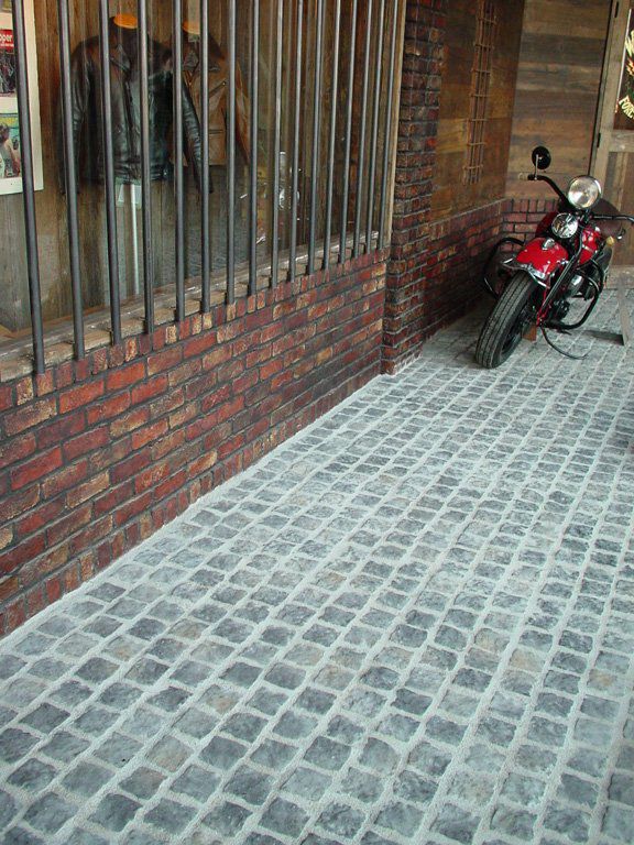 舗石調床材 キュービックキュービックは、ピンコロ石をモチーフにシート化した舗装床材(セメント2次製品)です。 ヨーロッパの古い街道の石畳のような重厚さとともに、カジュアルな雰囲気を作り出します。 シートになっているので施工が簡単。 住宅のエントランスからガーデンテラス、駐車スペースやランドスケープまで幅広く使用できます。