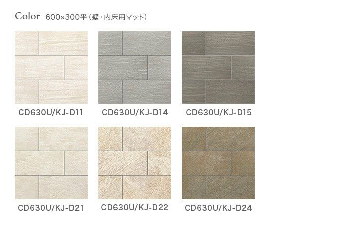 他の画像を見る ケース クリンディア 品番:CD630U-KJ-D24 | サイズ:600×300角平(壁・内床用マット)(595×295×9mm) 床暖房対応 磁器質(BI類) ケース ¥ 11,550 税込 カートに入れる お気に入りに登録する