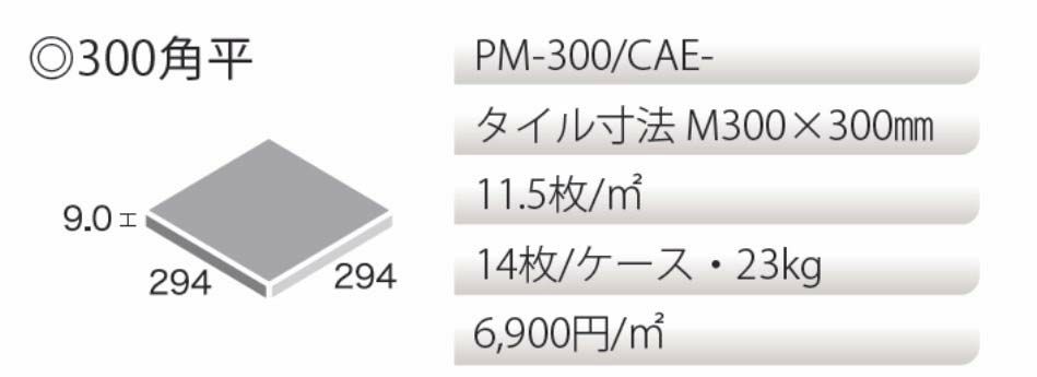 他の画像を見る ケース カーネ 品番:HY-300/CAE-30-3 | サイズ:300角平(294×294×9mm) 床暖房対応 磁器質(BI類) ケース 通常販売価格 ¥ 10,580 ¥ 9,533 税込 カートに入れる お気に入りに登録する