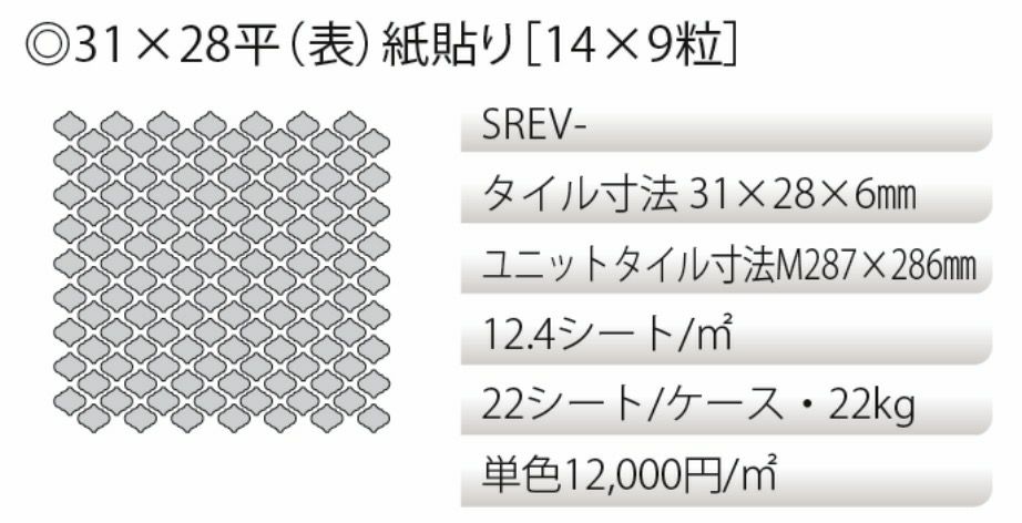 他の画像を見る シート [数量限定]コレベリ 品番:SREV-03-p | サイズ:31×28平(287×286×6mm) 磁器質(BI類) スペシャルプライス シート 通常販売価格 ¥ 1,453 ¥ 1,018 税込 カートに入れる お気に入りに登録する