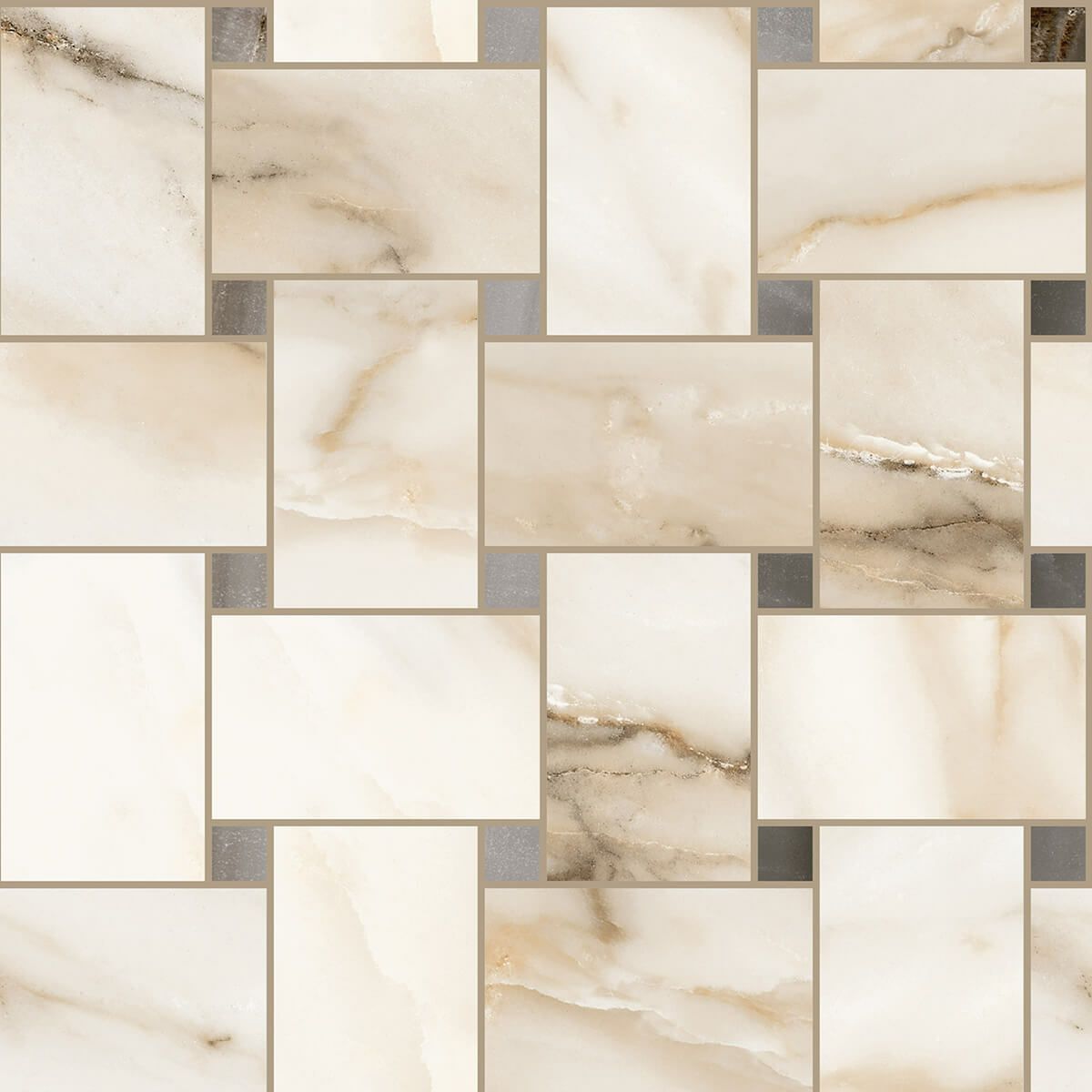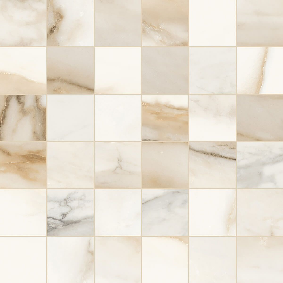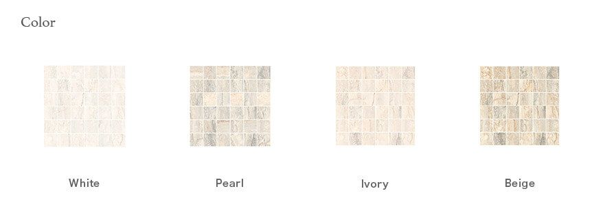モザイクとは「小片を寄せあわせ埋め込んで、絵(図像)や模様を表す装飾美術の手法」を意味します。モザイクタイルはその伝統的な手法を取り入れた、タイル1枚の表面積が50cm2以下のタイルの総称です。おおよそタイル1辺のサイズが50mm(5cm)以下であることが多く、水まわりやインテリアのアクセントに最適のタイルです。