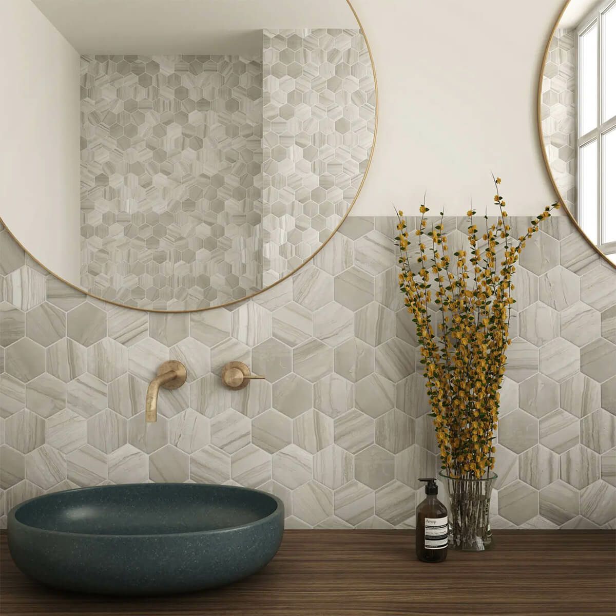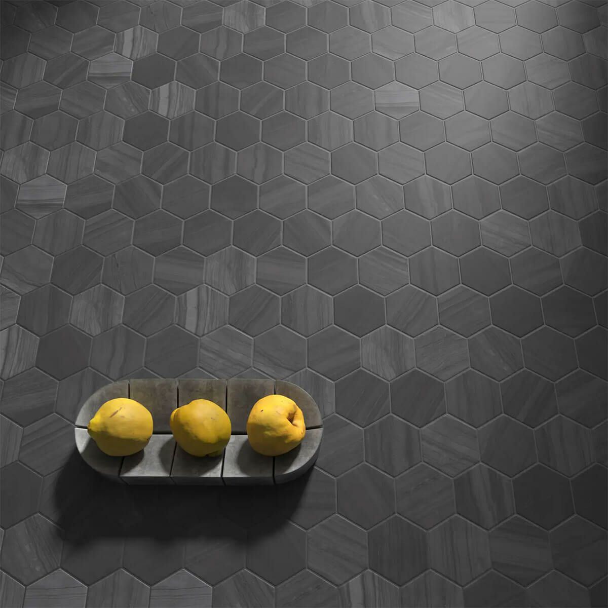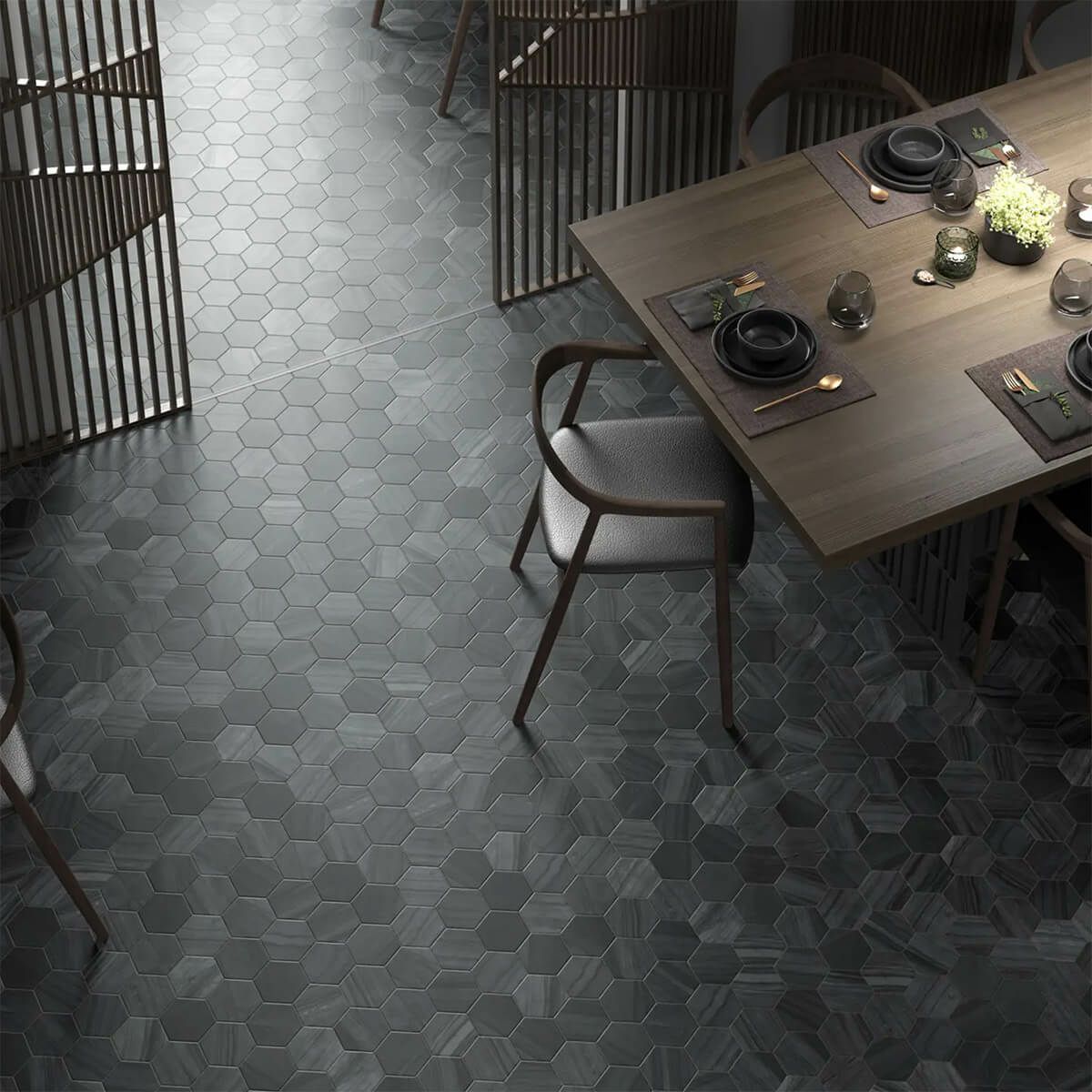 ヘキサゴン(六角形)は昔からある伝統的なデザインのひとつです。ヨーロッパや日本で昔から見られるこの形状は、質感や大きさの違いで、モダンにもレトロにもインダストリアルにも変化する人気のタイルです。