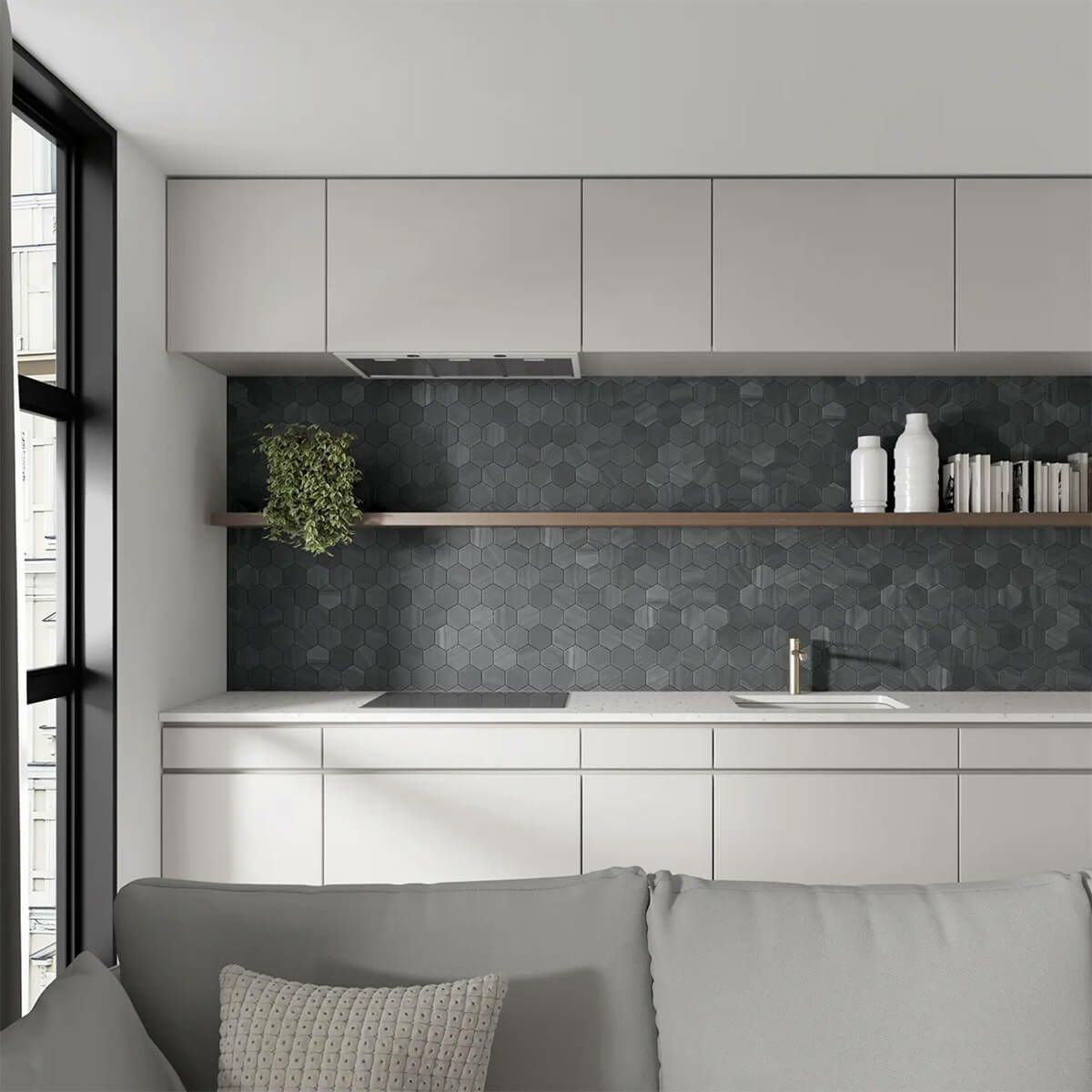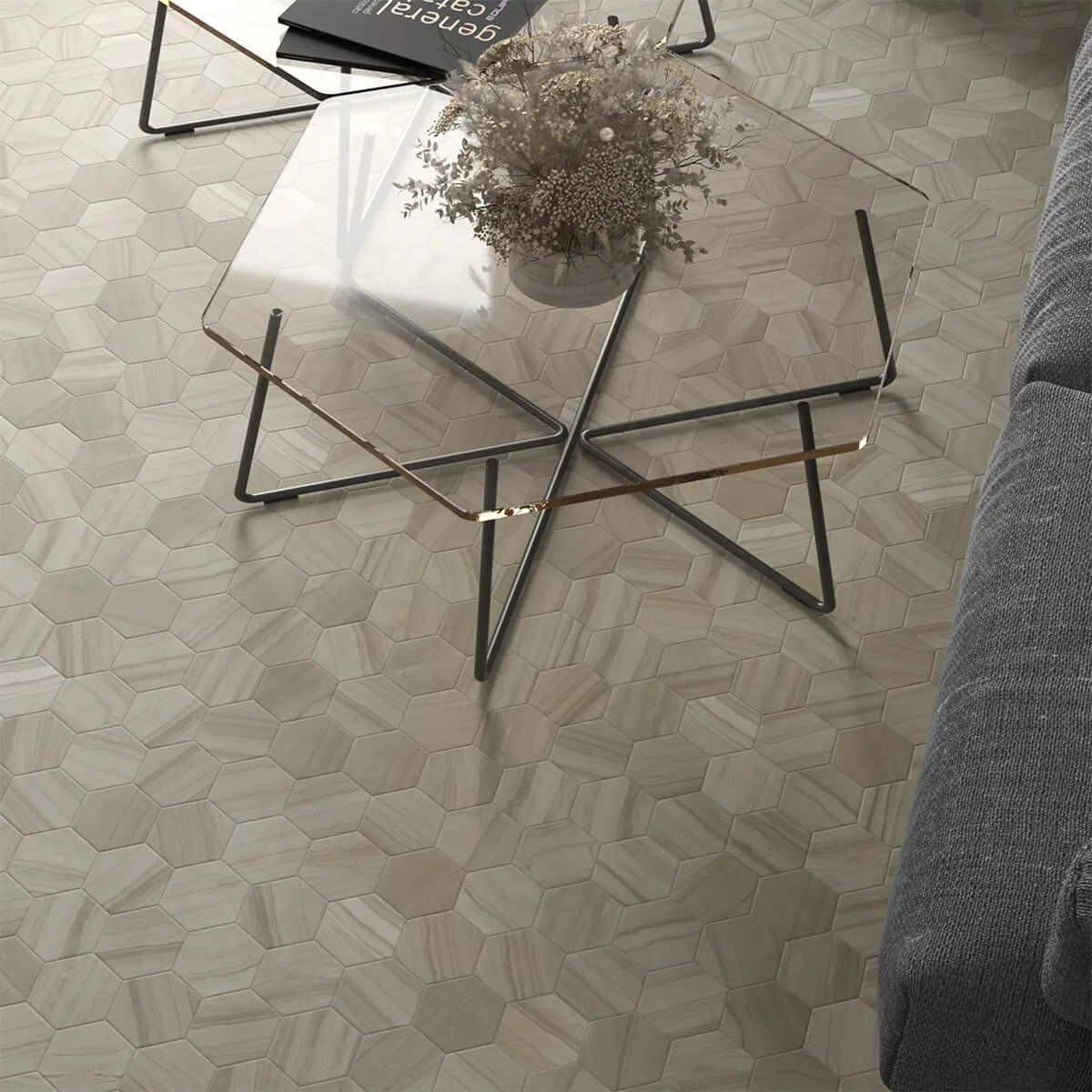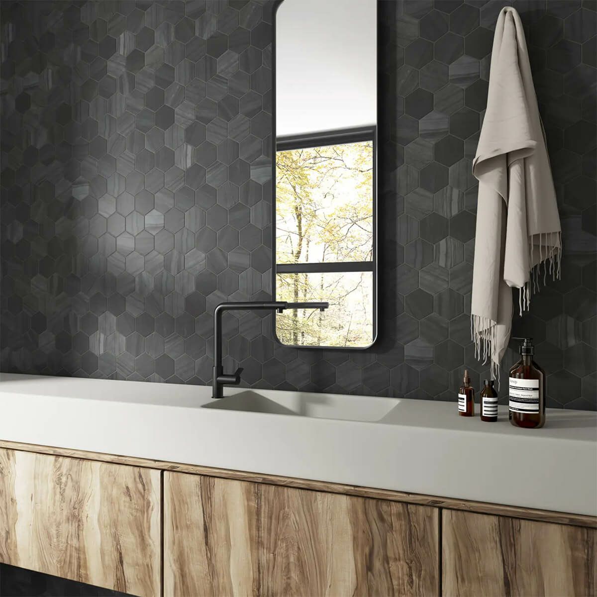 ヘキサゴン(六角形)は昔からある伝統的なデザインのひとつです。ヨーロッパや日本で昔から見られるこの形状は、質感や大きさの違いで、モダンにもレトロにもインダストリアルにも変化する人気のタイルです。