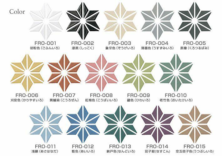 他の画像を見る シート 麻の葉 品番:FRO-100,FRO-110 | サイズ:45×14三角形(約242.5×315×6mm) 磁器質(BI類) シート ¥ 20,469 税込 カートに入れる お気に入りに登録する