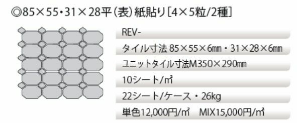 他の画像を見る シート レベリ 品番:REV-MIX2 | サイズ:85×55・31×28平(350×290×6mm) 磁器質(BI類) シート ¥ 2,970 税込 カートに入れる お気に入りに登録する