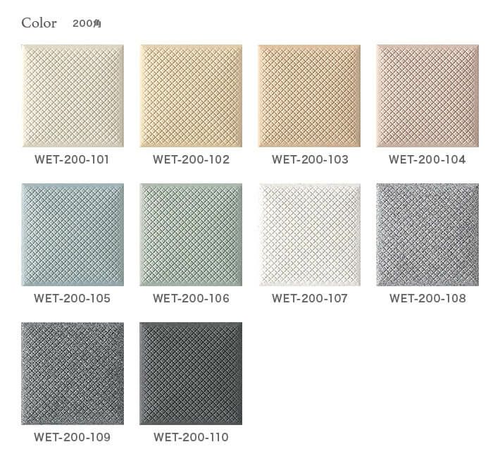 他の画像を見る 枚 ウェットエリア 品番:WET-200-110 | サイズ:200角ノンスリップ面(194×194×9~11.2mm) 磁器質(BI類) 枚 ¥ 1,175 税込 カートに入れる お気に入りに登録する