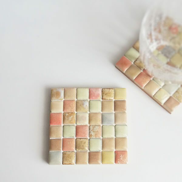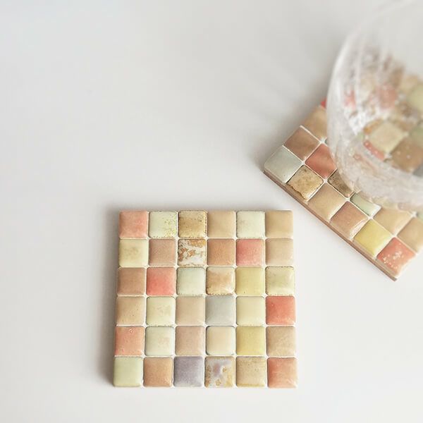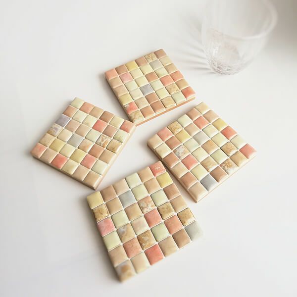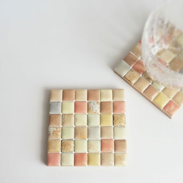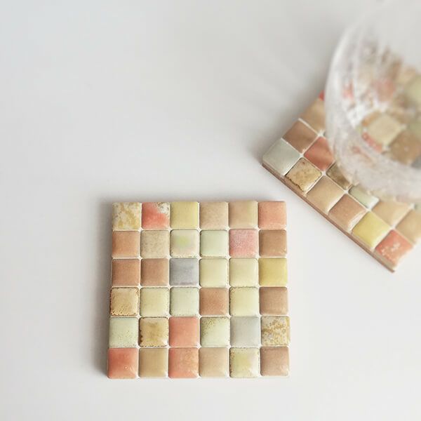 パステル調の淡い色味のタイルを組み合わせたコースターです。