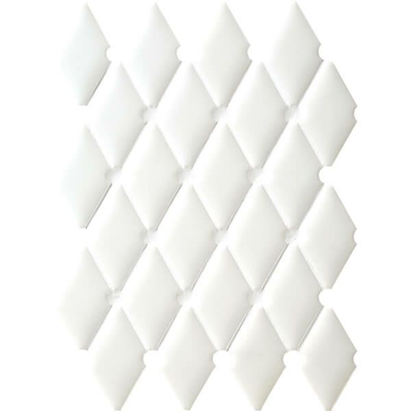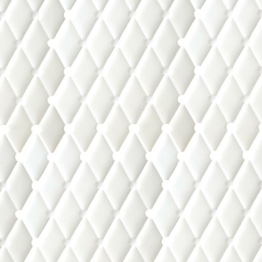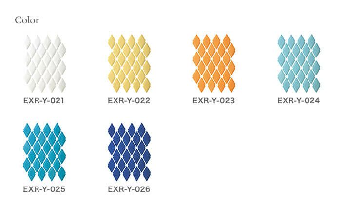 テキスタイルのような柔らかな丸みを帯びたフォルムを、艶やかなブライト釉で包みこみました。 上品なダイヤ模様を編み出す貼りパターンが、オーセンティックな空間を創造します。