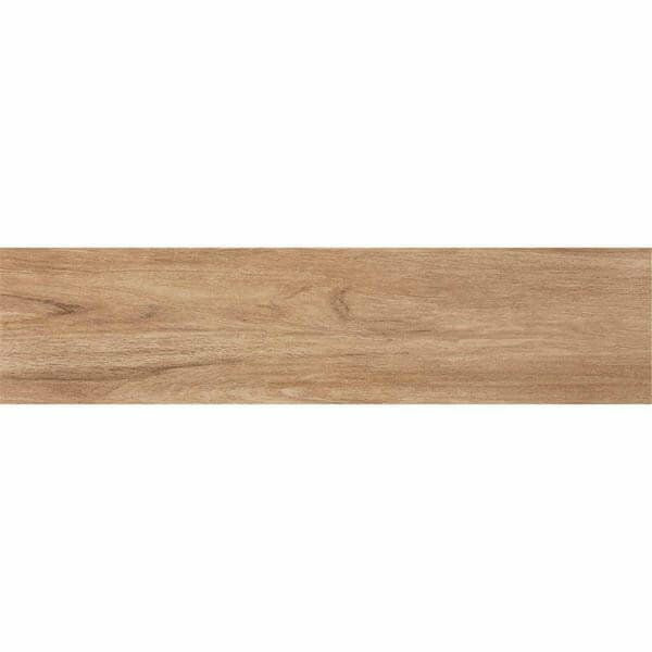外床・内床が同色で揃うナチュラルな木目調タイル。粗目タイルは滑りに強く、駅や商業施設の床に広く採用されています。