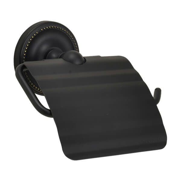真鍮をたっぷりと使い、ラグジュアリーな高級志向のデザインのトイレットペーパーホルダ−です。 無垢材の真鍮を高級感の高い艶消し黒色に着色した仕上げで、アンティークな風合いを感じるブラックです。