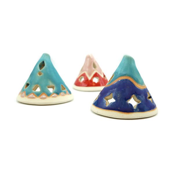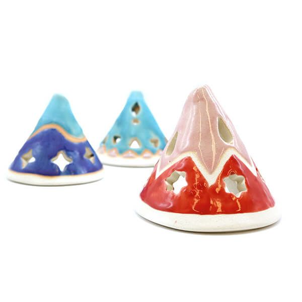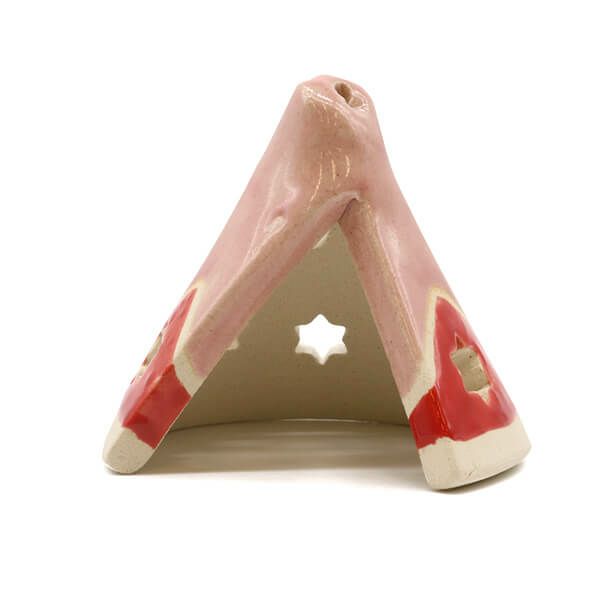 テントモチーフのライトカバーです。 LEDライトを入れて、焼き物から溢れる優しい光に癒されたりそのままオブジェとして飾ってお部屋のアクセントにしても素敵です。