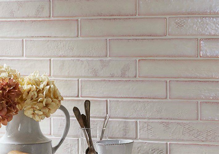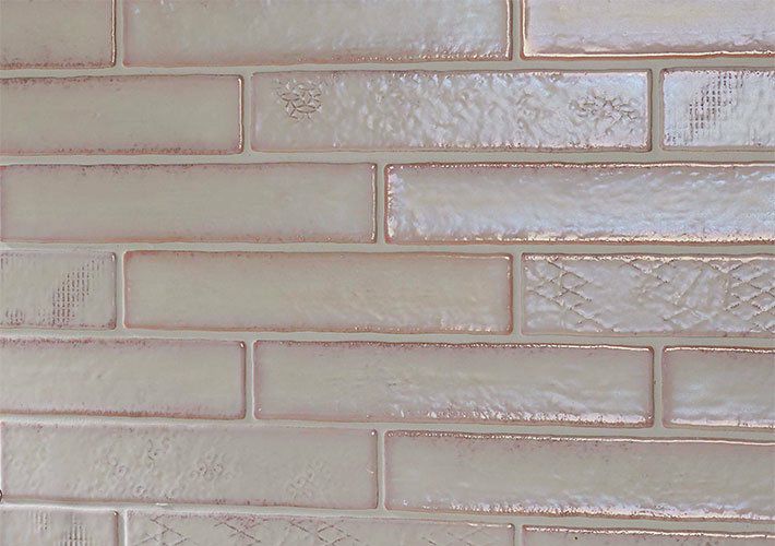 何種類かのタイルには、アンティーク感のある柄模様のレリーフが見え隠れする。