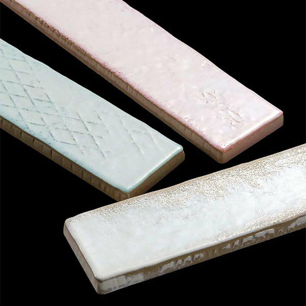 ● 釉薬面の保護のため、樹脂状の緩衝材がタイル表面と裏面に付いています。施工時に取り除いてください。