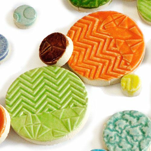ひとつひとつ手作業でエンボス加工を施した、カラフルなモザイクタイルです。