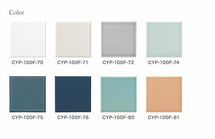 清潔感や透明感を表現した艶やかな質感と、優しい窯変釉による色調のゆらぎが特徴です。小さな面積にも使いやすい100角のサイズでご用意しました。
