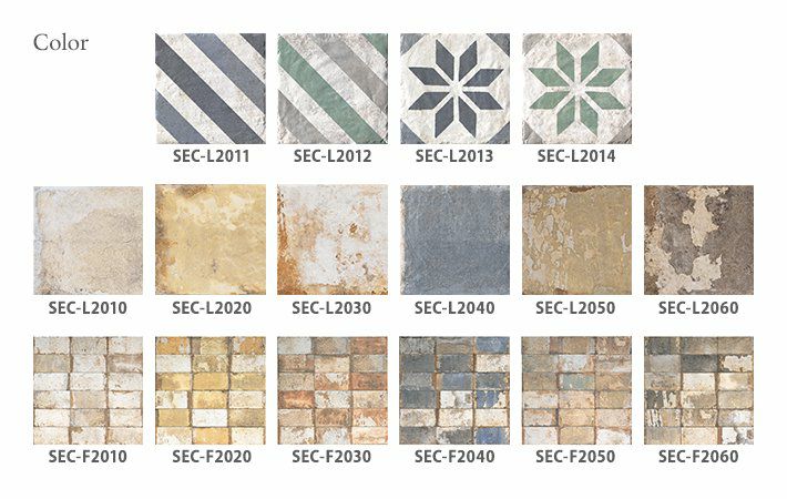 南米キューバの風土や気候までも映し出したかのような、ハバナの歴史的建造物やコロニアル建築をイメージした床壁両用タイルです。ヴィンテージ調のテクスチャーが趣のある空間を演出します。