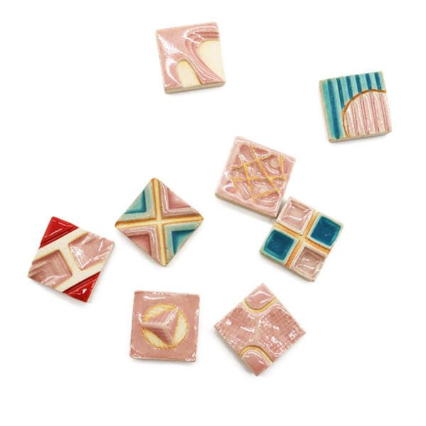 遺跡や街並みをモチーフとした作品を多く手がける彼女のタイルは、宝箱に大切にしまっておきたくなるような、どこかエキゾチックな佇まい。タイルとしてはもちろん、箸置きやアクセサリーパーツとしての使用もおすすめです。