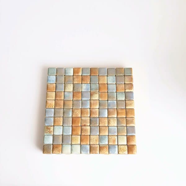 雰囲気のあるブルーとブラウンのタイルを組み合わせたディスプレイです。