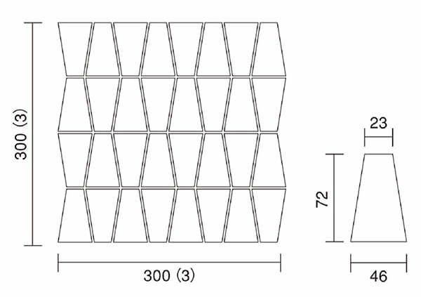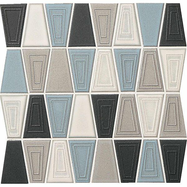 「リトム」。アールデコの幾何学デザインに触発された台形のモザイクタイル。淡く浮き出るラインの意匠が特徴的です。