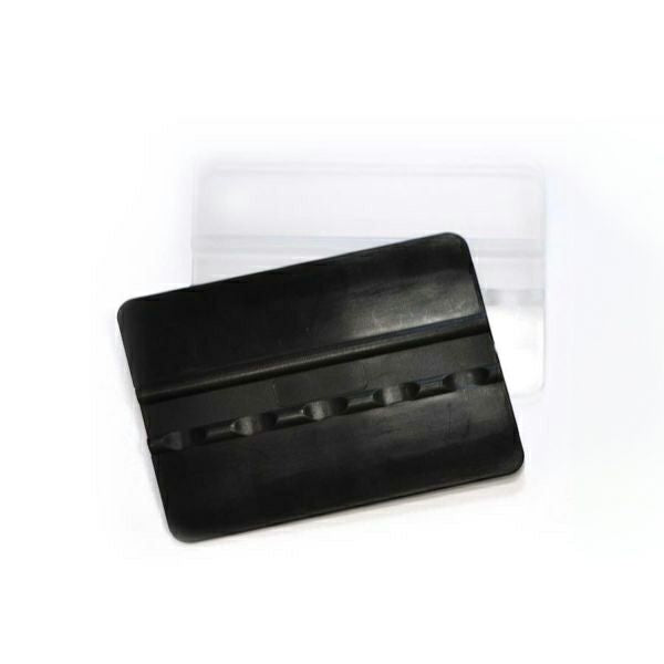 <li>台紙側に切文字が残っていないことを確認したら、スキージーを使って気泡(水)を押し出すように、アプリケーション(透明のシート)+切文字を貼り付ける面へ圧着させます。 ※力を入れすぎるとシワ、破れの原因になるのでご注意ください。 </li>
