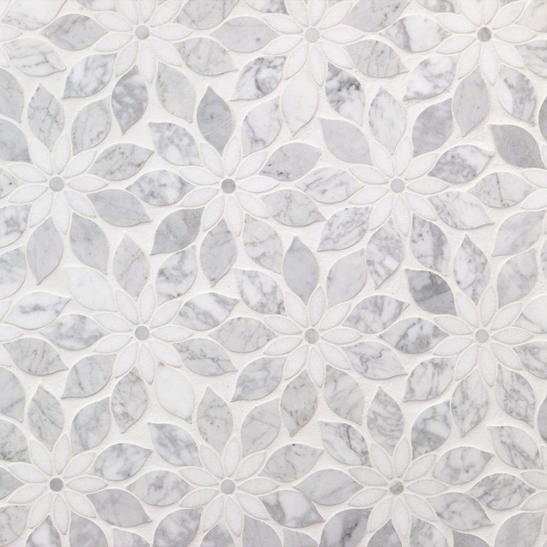 デザイン豊かな大理石モザイクを集めた特別なコレクション。三角形のモザイクタイルでキッチンやバスルーム、洗面・トイレをラグジュアリーな空間に。