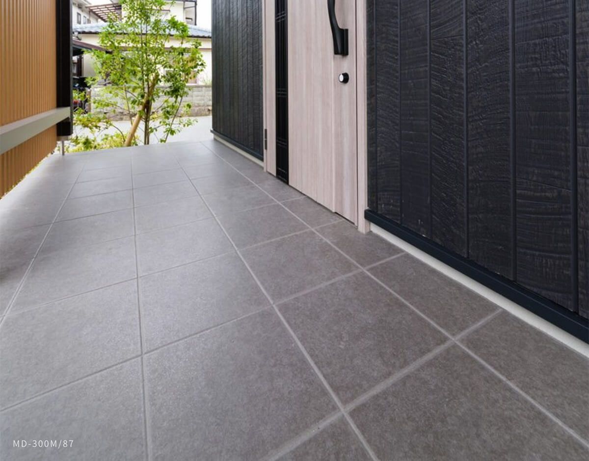 戸建玄関ポーチのスタンダード床タイル「マディソン」。スタンダードなSシリーズとモダンなMシリーズをご用意。全22色豊富なカラーバリエーションと高いグリップ性能で、幅広い分野でご利用頂いています。