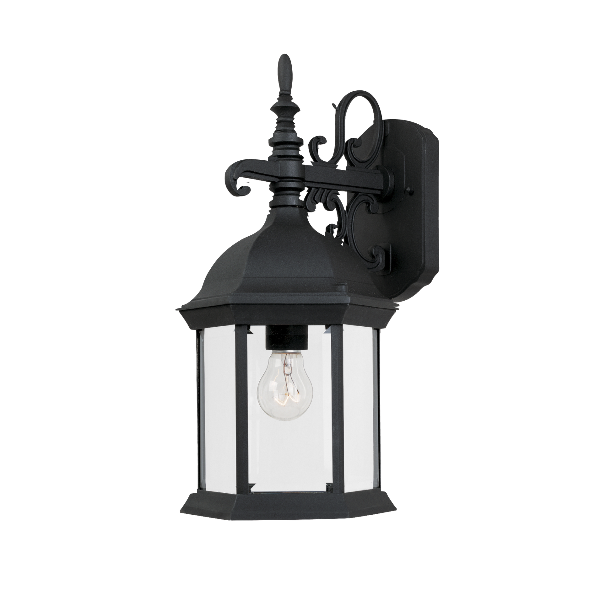 英国デザインを彷彿とさせるクラシックな佇まいが魅力の輸入壁付け照明。 優雅なアームデザインとクリアガラスを組み合わせたランタン型ブラケットライトが、輸入住宅やヴィンテージスタイルの外構に気品と奥行きのある表情を添えます。 玄関やポーチのアクセントとして、上質な欧風空間を演出する屋外照明です。