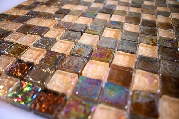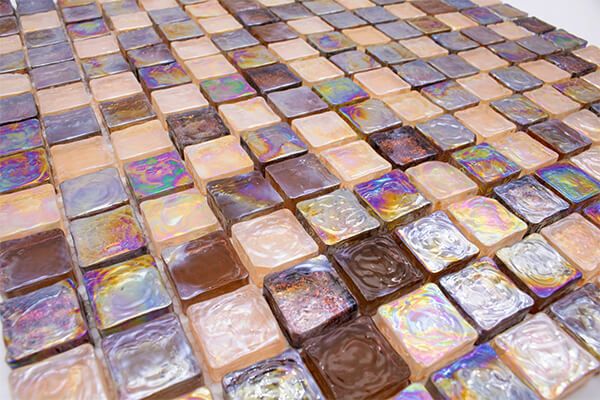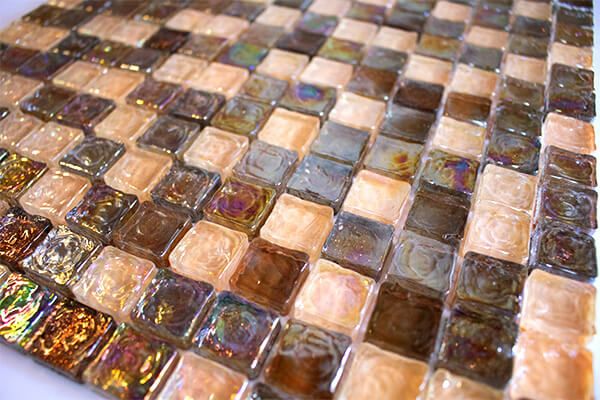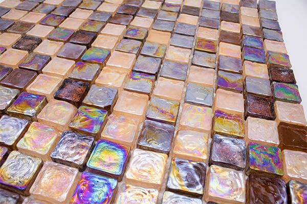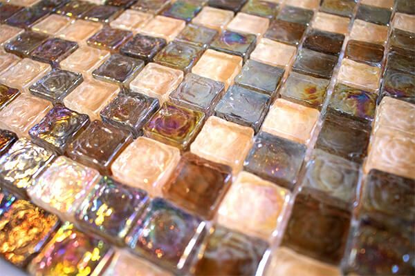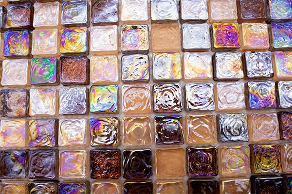 キラキラと輝く飴玉のようなガラスモザイクは、透明素材の美しさを際立たせる華やかなカラーバリエーション、落ち着いた雰囲気を兼ね備えながらもキュートな空間演出ができます。ガラスの特有な製法によるハンドメイド感、ゆるやかな曲線とラメが入った組み合わせは、光に当たるとキラリと瞬くので、微妙な色のニュアンスを引き立たせその魅力を発揮します。