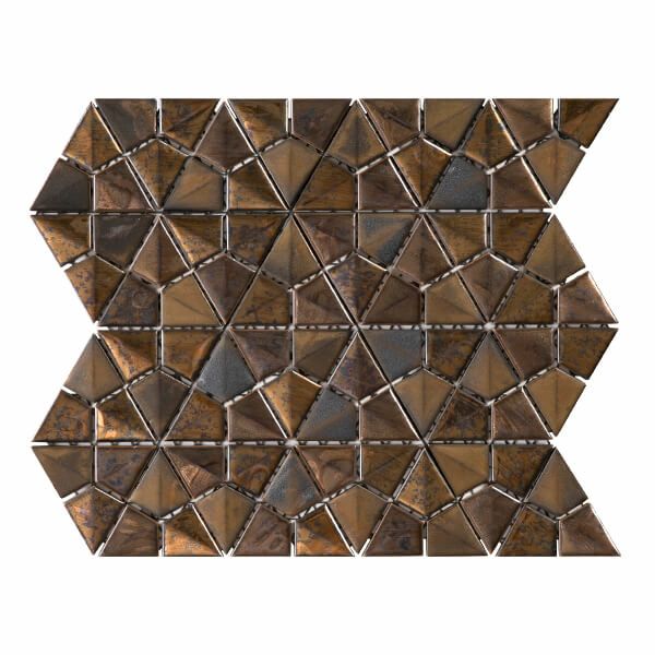 日本の伝統模様から派生した形に艷やかな釉を施した亀甲形のタイル。ランダムな花紋様が気品ある空間を創作します。