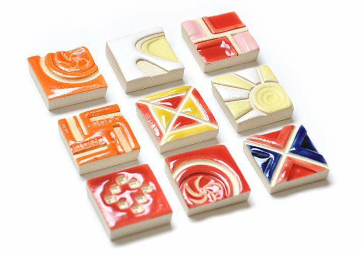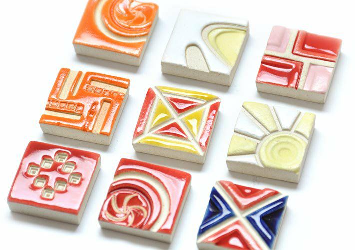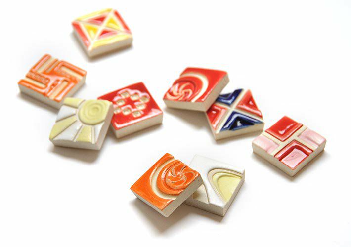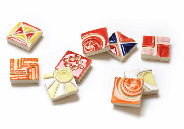 遺跡や街並みをモチーフとした作品を多く手がける彼女のタイルは、宝箱に大切にしまっておきたくなるような、どこかエキゾチックな佇まい。タイルとしてはもちろん、箸置きやアクセサリーパーツとしての使用もおすすめです。