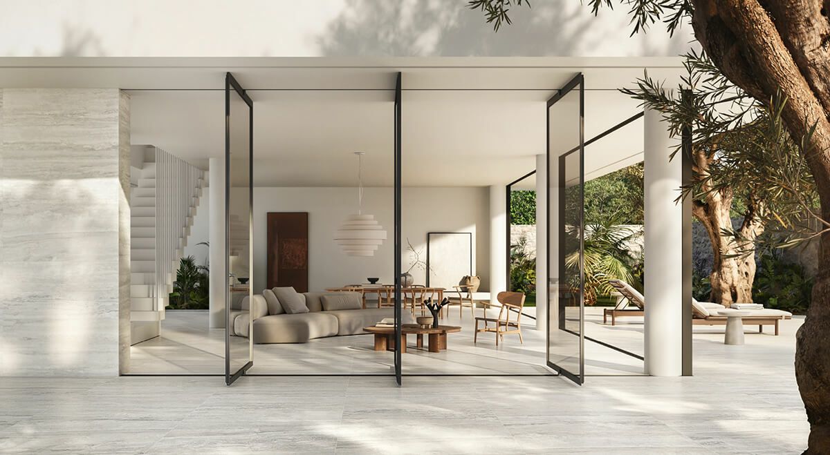 INVICTUS(インヴィクタス)は、古代ローマの栄華を象徴する建築素材「トラバーチン」を現代的に再解釈した石目調・磁器質タイルコレクションです。