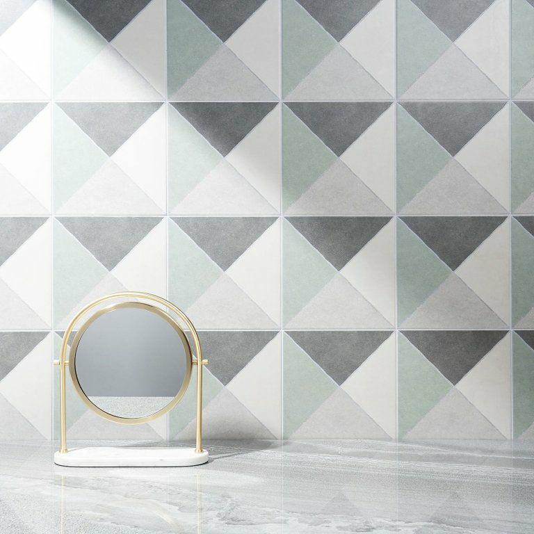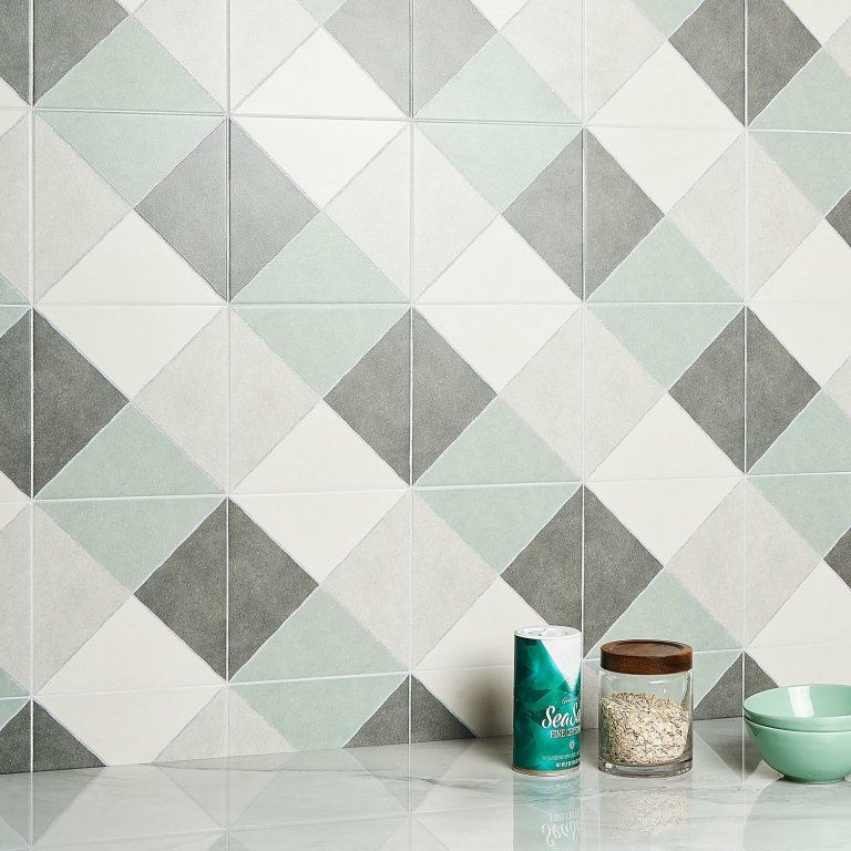 手作りの使い古された質感と落ち着いた色調を持ったマットな磁器タイル「アウトゥール」。シェブロンスタイル、チェック柄、アーガイル、ストライプ等、対角線とダイヤモンドの張りパターンで印象が変わる楽しいデザインタイルです。