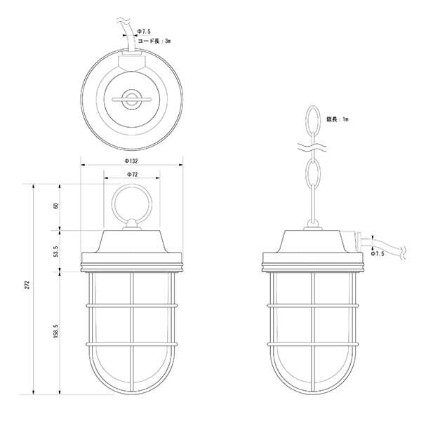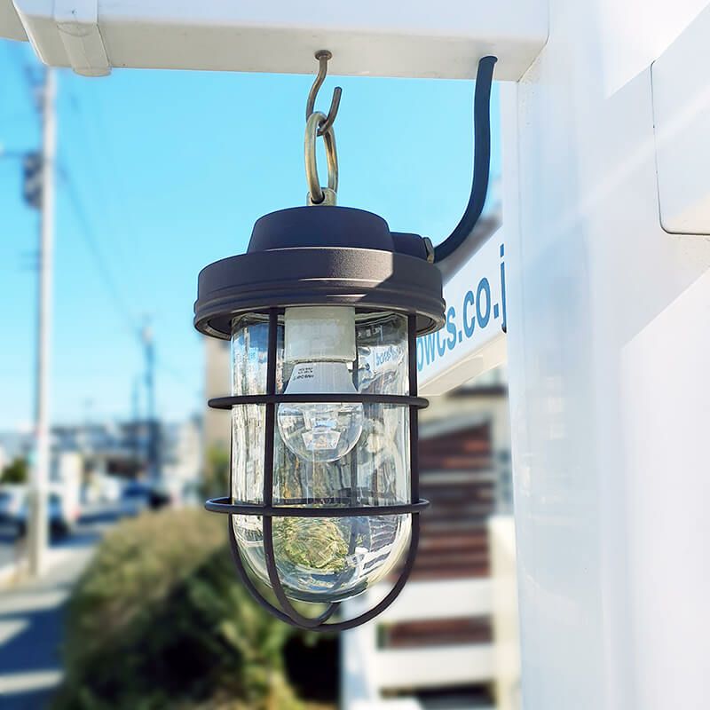 船舶用の作業灯を一般家庭や店舗でも使えるようにアレンジしたランプです。シンプルでありながら存在感を持つフォルムは、多様なエクステリアにマッチします。