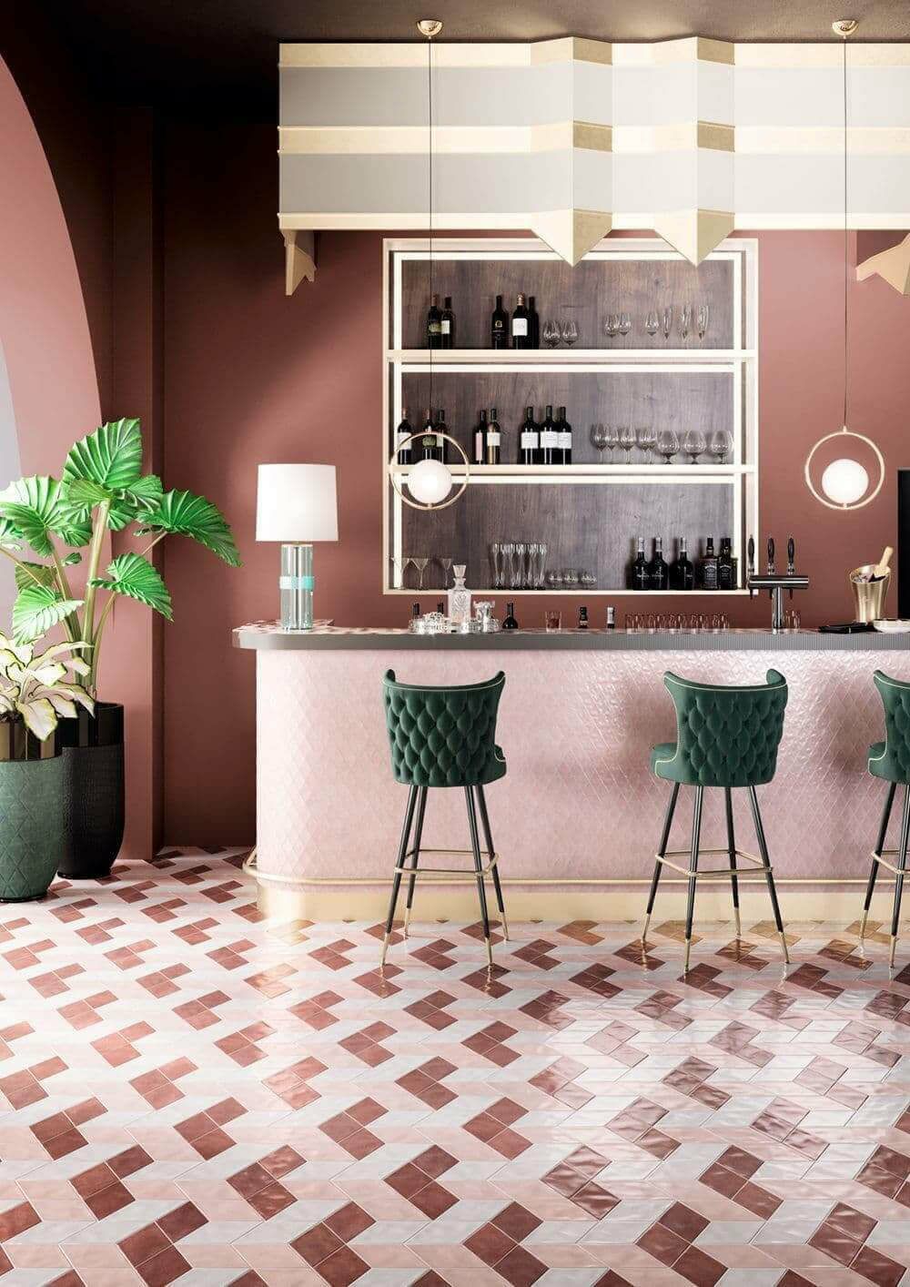 カタチとしての美しさが際立つダイヤ形状は、色とパターンの組み合わせでさまざまな幾何学模様に展開が可能。優しい光沢をもつ釉薬の表情とトーンを抑えたパステルカラーで、柔らかく包み込むような印象を創り出します。