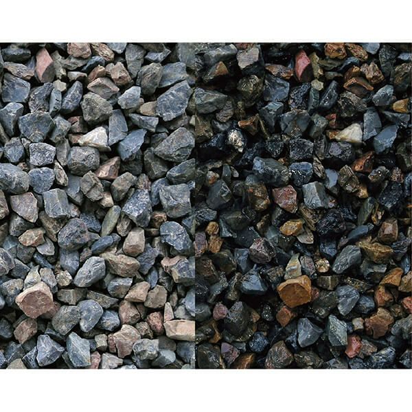 天然石のクラッシュ砂利です。濡れると鮮やかな発色を見せ、表情の変化を楽しめる庭の名脇役です。