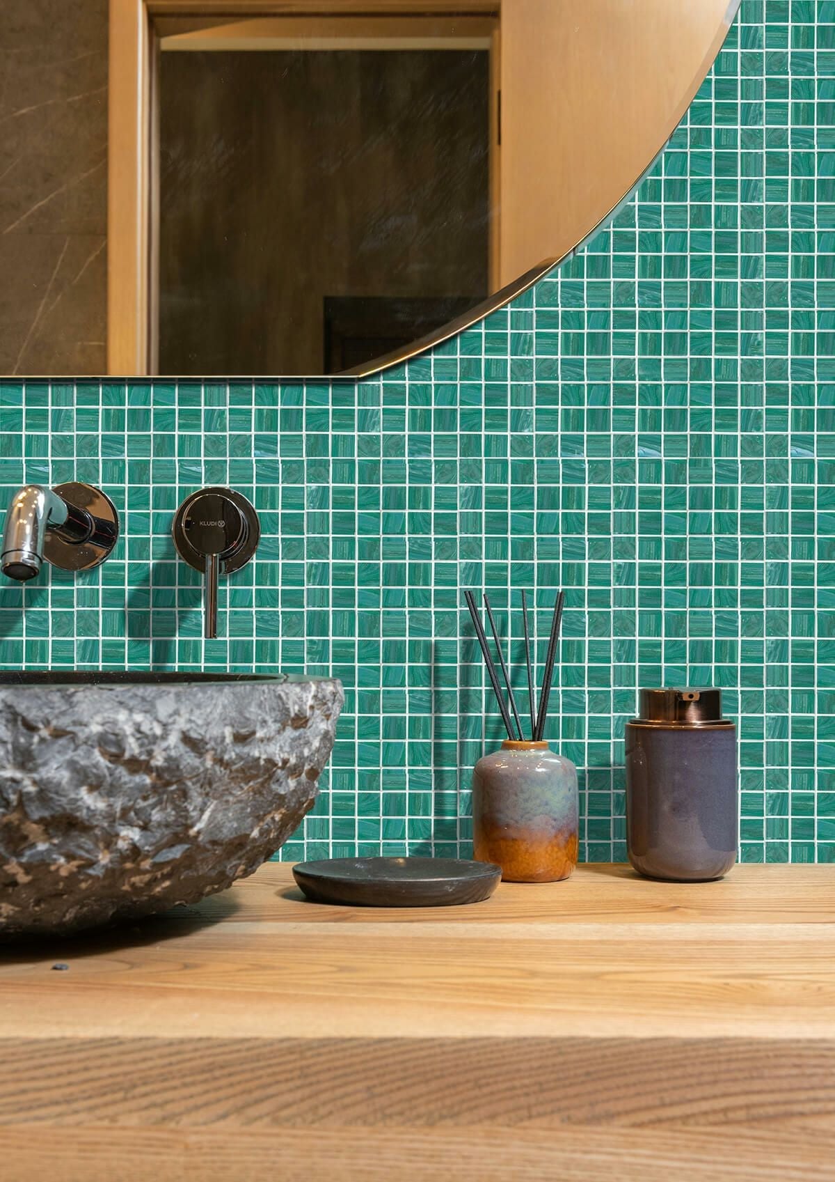 裏ネット張りのモザイクタイルはハサミでお好みのサイズにカットできるので、DIY初心者の方にもオススメです。