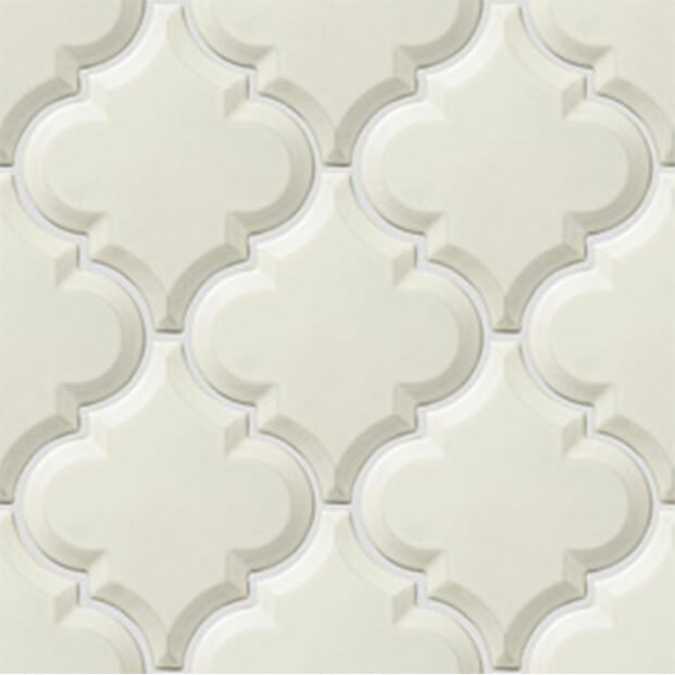 アラベスク模様をモチーフにした象徴的なフォルム。モザイクタイルよりも少し大ぶりな形状と落ち着いた色調は、現代建築に自然と溶け込み、優雅な大人の空間へと導きます。