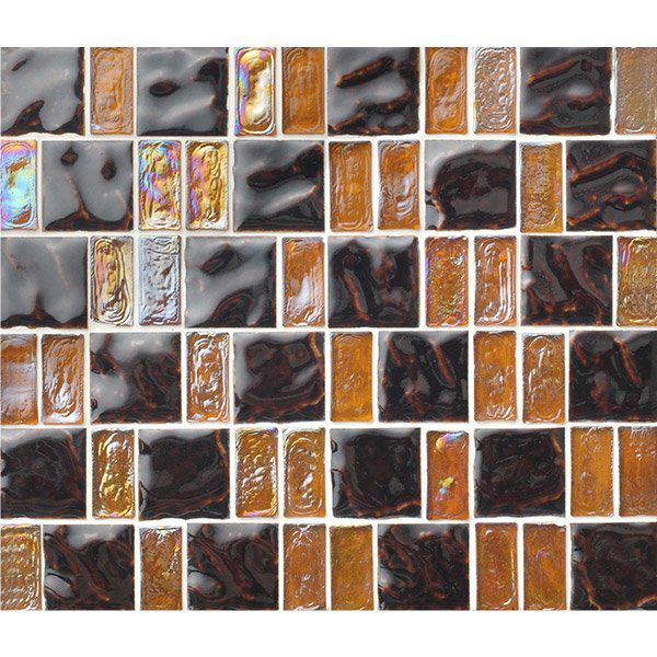 長方形のガラスタイルと正方形のセラミックタイルをミックス張りした、異素材の煌びやかやかなコントラストが美しいモザイクタイルです。タイルクラフトやDIYにも使いやすい42×42角・42×20角サイズ。