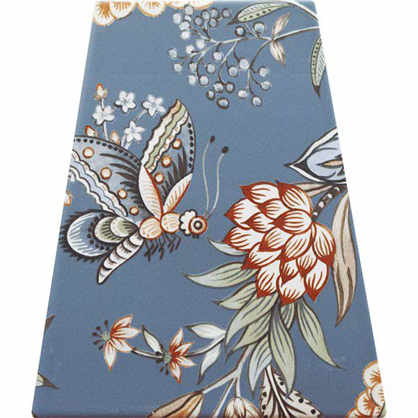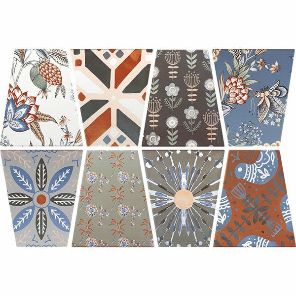 木綿生地の模様染め製品をモチーフにした柄(8種類)が エキゾチックな世界観に一目惚れした一枚タイル!スカート状の台形を生かすべく一枚タイルと持ち手を付けた上質な無垢材の木枠との互いに美しく引き立たせ合うフォルム。重量感があり、かつ可愛らしさ溢れたインテリジェンスなトレーが 出来上がりました。