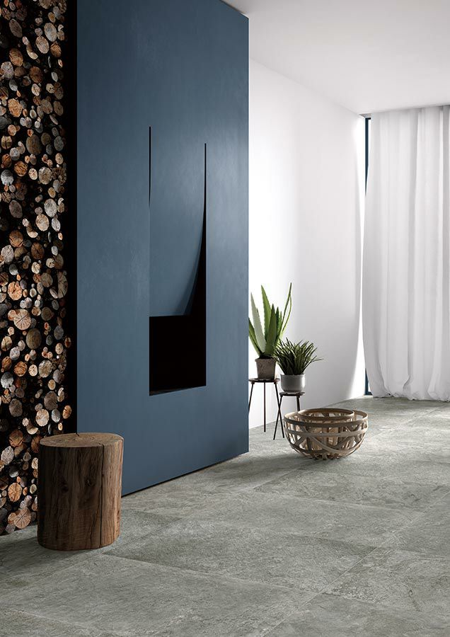 柄もカラーも豪快で野趣あふれる大判タイル。