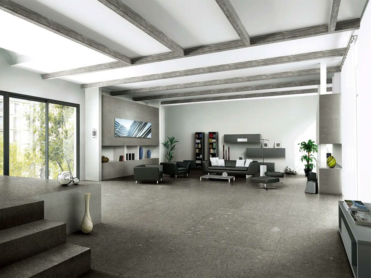 1200×600角の10mm厚で3面状を揃えた大判サイズのシリーズです。 リッジ(隆線)のように立体感のある石模様の平面と、ハンマーで叩いたような岩面、柄はカネット(糸すじ)のような繊細なラインが特徴。 厳選した5種類の天然石の再現は、ミニマルで機能的な装飾とマッチします。