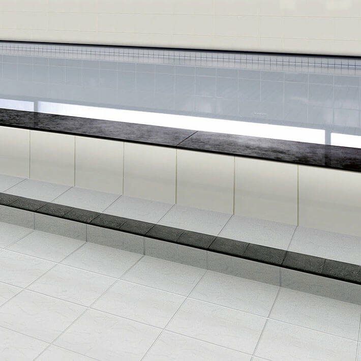 - 素地が多孔質であるため、小端面に目地を塗ると汚れて落ちなくなります。小端見せ納めは避けてください。また内床・壁タイプは小端仕上げ役物を用意していますので、ご使用ください。