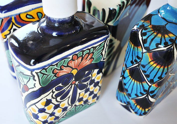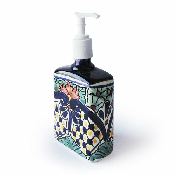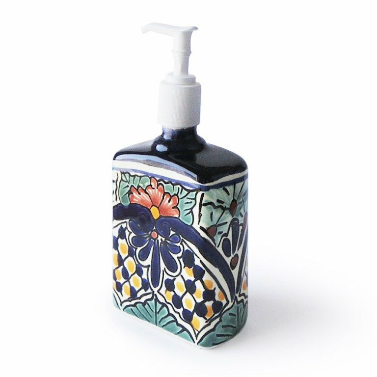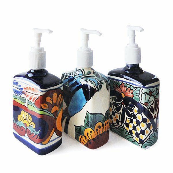 ラテンのエネルギーと素朴な可愛らしさ溢れる、メキシコ特産・タラベラ焼のソープディスペンサーです。