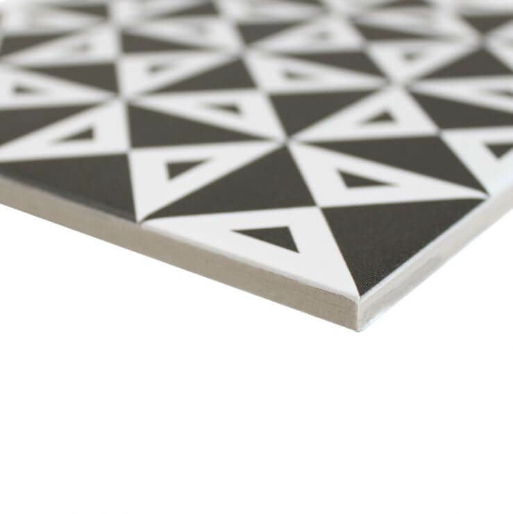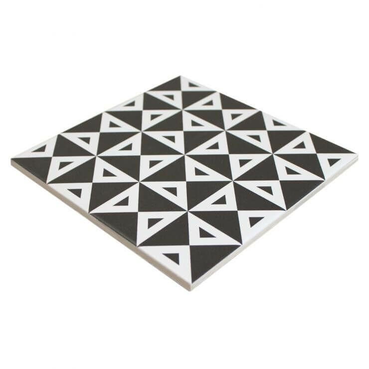 大胆な白黒のジオメトリック柄が特徴の200角タイル「B2W(ビートゥーダブリュー)」。