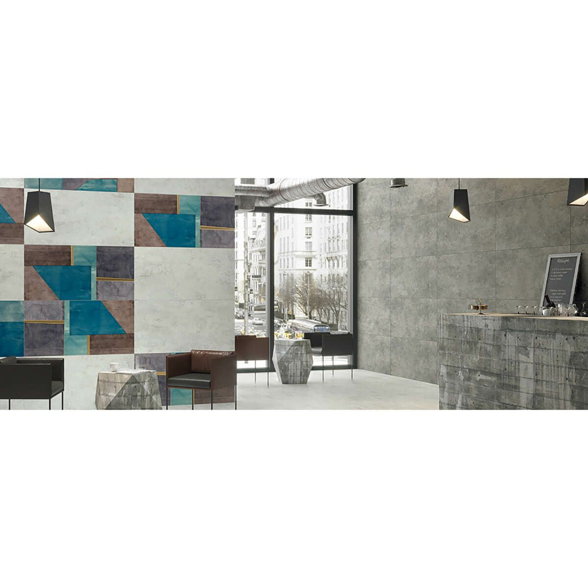 まるで絵画のようなアーティスティックタイル。大判×デザインが迫力のある壁床面をつくりだします。ラインナップの一部にはゴールドのデコレーション入り。さらに格式高い空間を演出します。