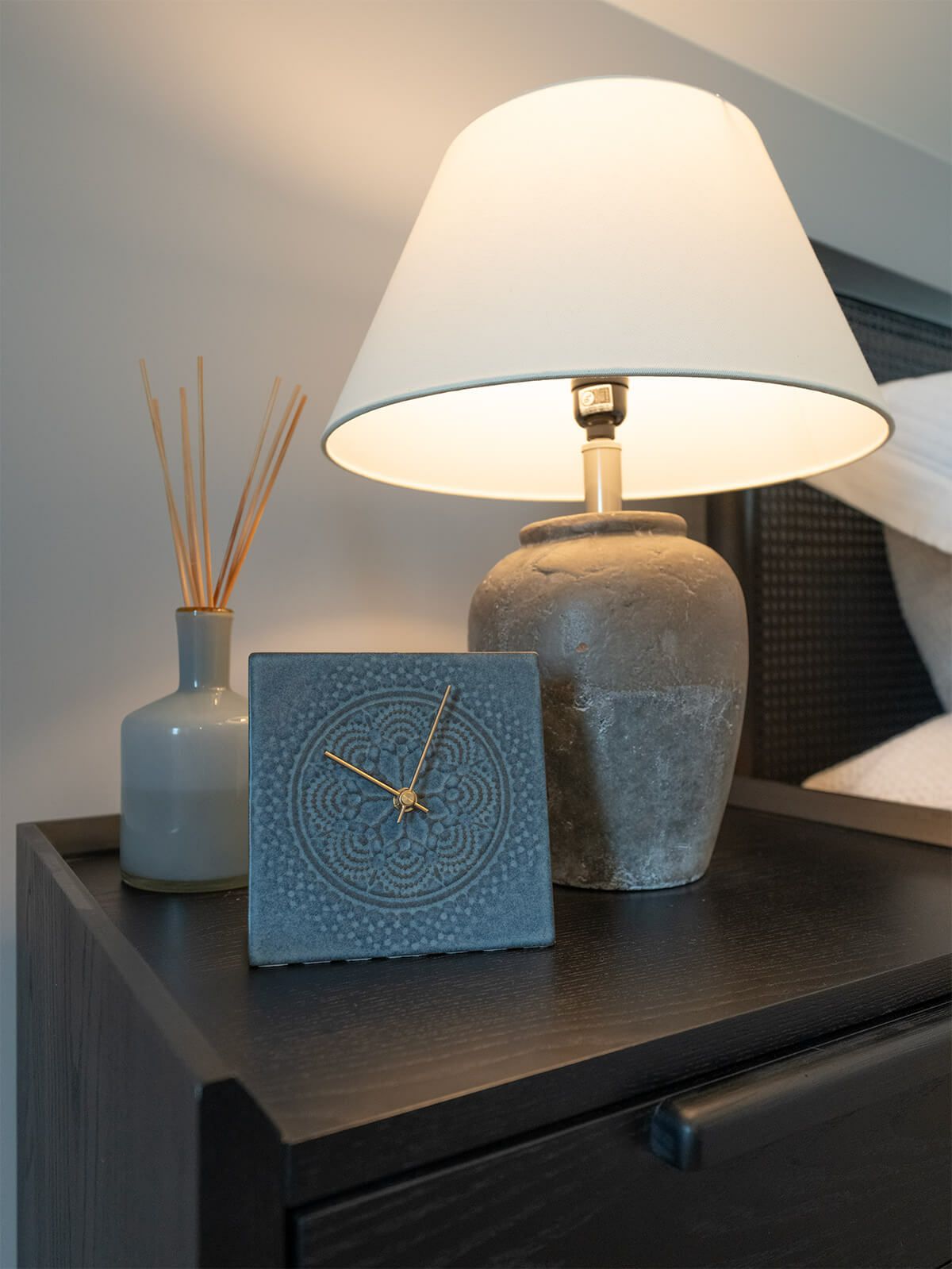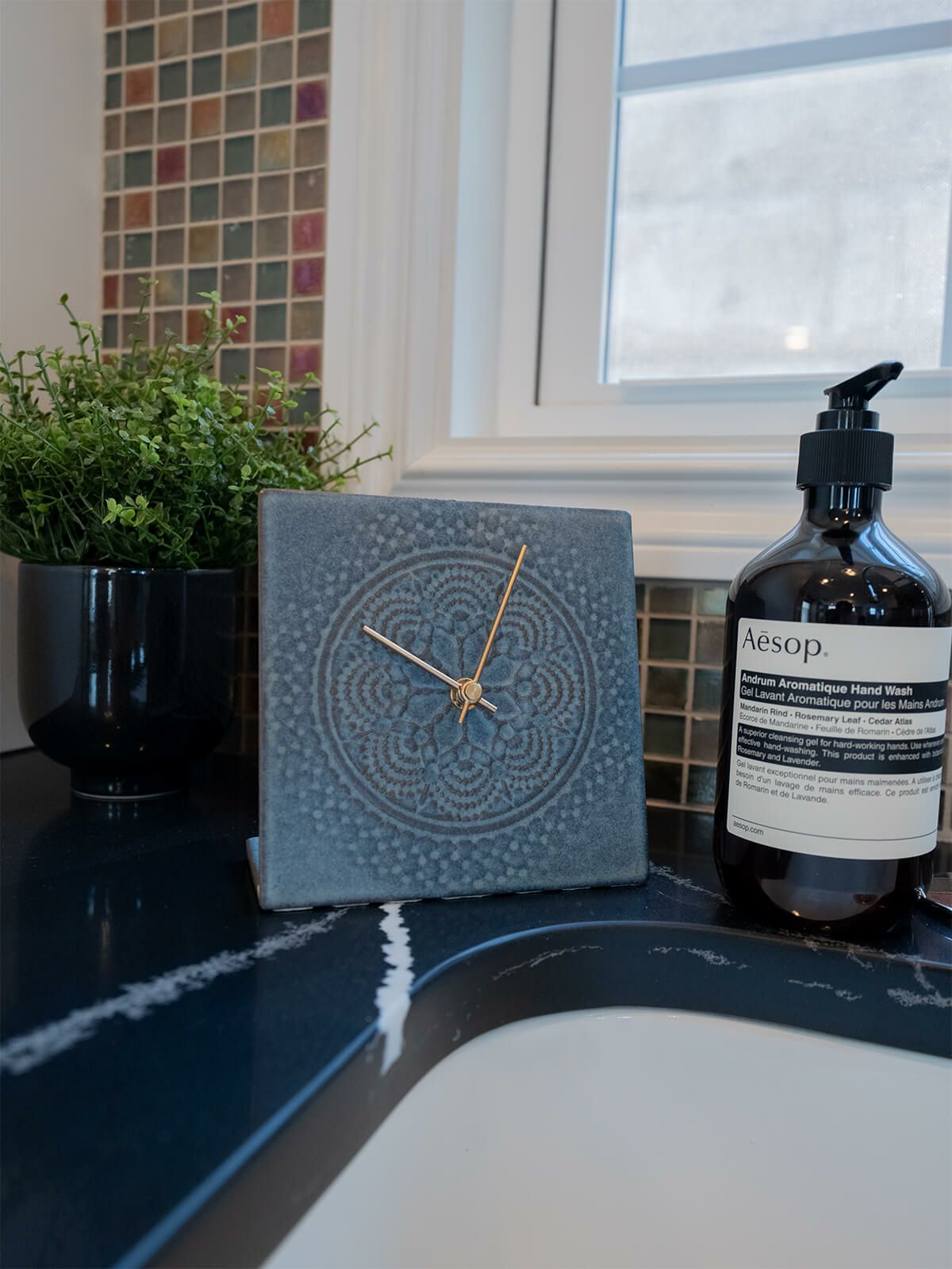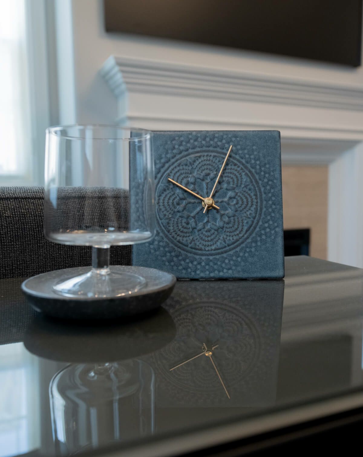 細やかなレース模様が美しいタイルで、置時計を作りました。