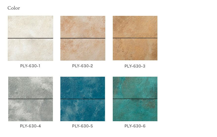 切り出した石英岩をイメージした粗削りなテクスチュア。石調タイルでは希少な、南欧テイストを意識した少し大胆なブルーとグリーンの色彩が、アウトドアエリアをパワフルなスペースに演出します。取り入れやすいサイズ感の600×300角・300角のラインナップで用意しました。