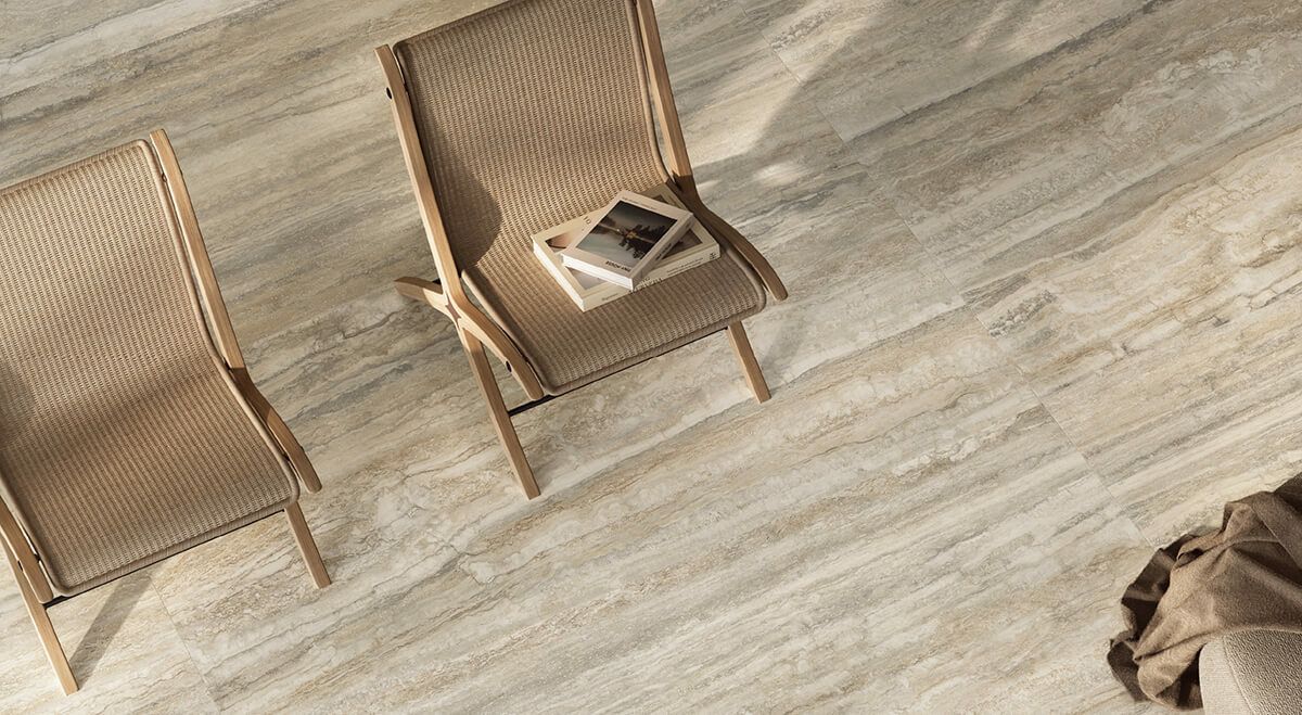 INVICTUS(インヴィクタス)は、古代ローマの栄華を象徴する建築素材「トラバーチン」を現代的に再解釈した石目調・磁器質タイルコレクションです。