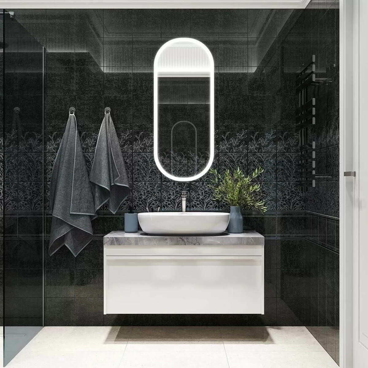 背景は、金属化合物で作られた細いクモの巣模様であるクラックル効果で仕上げられています。このシリーズには、白、ボルドー、黒の3つのカラーソリューションがあり、それぞれが異なる雰囲気を醸し出し、部屋に特別なムードを満たします。